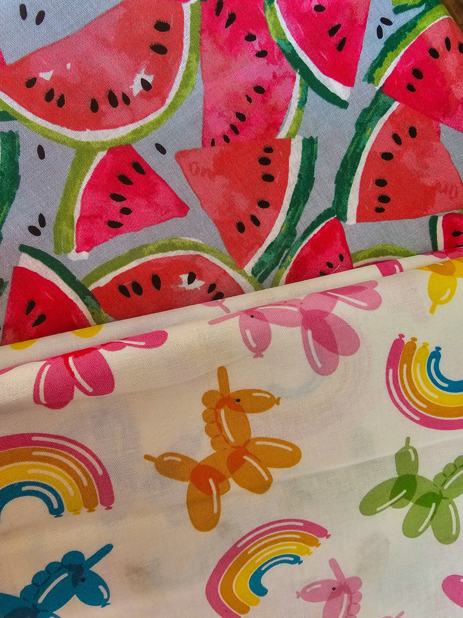 Photo à titre d'exemple de quelques uns des tissus que nous avons. Les motifs peuvent différer.